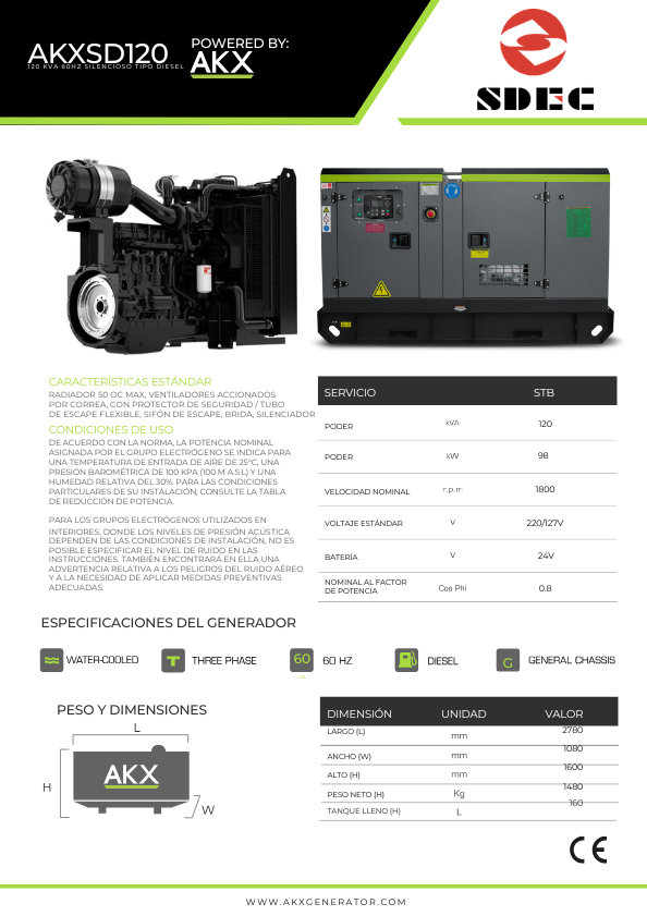 Características Clave del Generador AKX Sdec 120 KVA