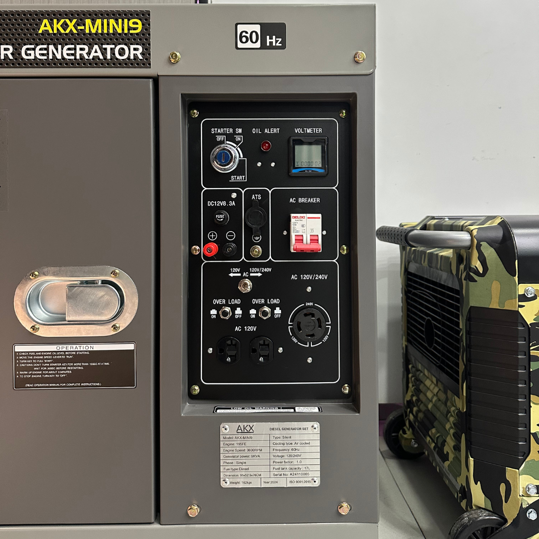 Si buscas una planta eléctrica que ofrezca potencia sin sacrificar eficiencia, el AKX 9KVA es la respuesta. Con 9KVA de capacidad, este equipo puede alimentar electrodomésticos, equipos electrónicos y maquinaria sin problemas. Además, su tecnología de bajo ruido lo hace ideal para entornos donde el sonido es un factor crítico, como hospitales u oficinas.