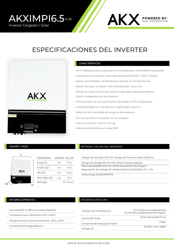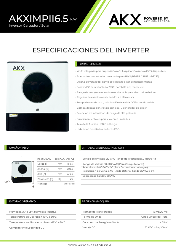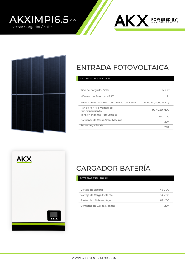 Los inversores AKX de 6.5KW se han convertido en una solución confiable para quienes buscan independencia energética y eficiencia en su hogar o negocio. En AKX GENERATOR contamos con dos modelos avanzados: Max Pro I y Max Pro II, ambos diseñados para adaptarse a diferentes necesidades de instalación y rendimiento.