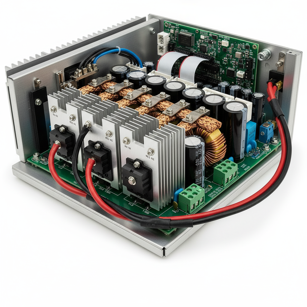 La etapa de potencia en un inversor es el conjunto de componentes electrónicos encargado de transformar la energía de corriente continua (DC), proveniente de baterías o paneles solares, en corriente alterna (AC), que es la que utilizan la mayoría de los electrodomésticos y equipos eléctricos. Sin esta conversión, la energía no sería compatible con los dispositivos que usamos en el día a día, lo que hace que esta parte sea considerada el “corazón” del inversor.