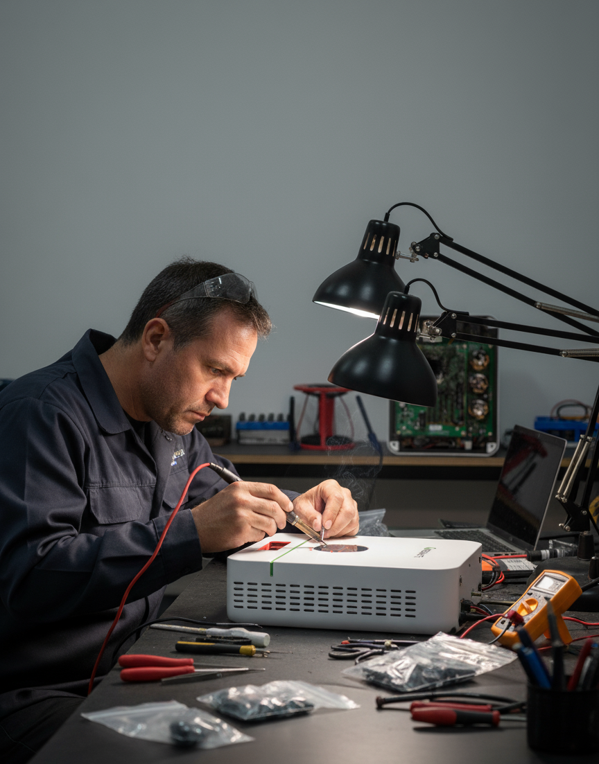 En nuestro servicio técnico evaluamos el estado del inversor, revisamos la etapa de potencia y reemplazamos los componentes dañados si es necesario. Cada reparación está enfocada en restablecer la estabilidad del equipo y garantizar que vuelva a operar con seguridad.